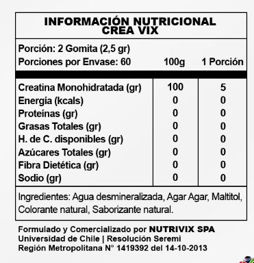 CREAVIX – Creatina Monohidratada - 60 Gomitas de 2,5 gr c/u